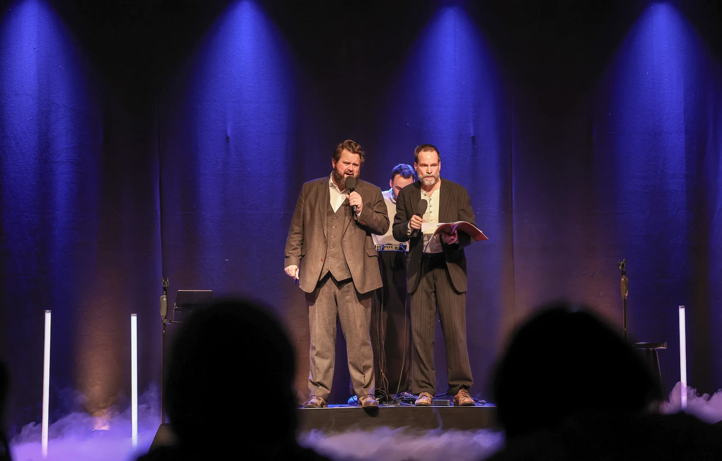 Ein einzigartiges Bühnenerlebnis: Antoine Monot und Wanja Mues (bekannt aus „Ein Fall für zwei“, ZDF) spielen live Kriminalgeschichten nach G.K. Chesterton. Beatboxer Marvelin erzeugt dabei alle Geräusche und Soundeffekte live mit dem Mund – ohne Playback. Mehr unter paterbrown.com/live-hoerspiel.